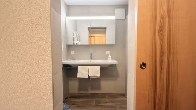 Eine grossartige Aussicht vom Ostbalkon geniessen Sie in dieser hellen und modern eingerichteten Wohnung mit 65 Quadratmetern Fläche. Für bis zu vier Personen stehen zwei Schlafzimmer und ein komfortabler Wohnbereich zur Verfügung. Die offene Küche ist modern eingerichtet und erlaubt die unabhängige Selbstverpflegung inklusive Geschirrspüler, Wasserkocher und Kaffeemaschine. Ein Bad mit Wanne und WC und ein weiteres Badezimmer mit Dusche und ein seperates WC komplettieren das neulich modernisierte Apartment.