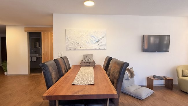 Für bis zu sechs Personen (4Erw/2Kinder), bietet unsere schon etwas länger bestehende Duplex-Wohnung auf 85 Quadratmetern reichlich Platz für schönes Wohnen auf Zeit. Das Apartment verfügt über 3 Schlafzimmer und einen grosszügigen Wohnbereich mit offener, funktional ausgestatteter Küche. Highlight der Wohnung ist der Ost-Balkon mit sensationeller Aussicht. Ein Bad mit Badewanne und WC sowie ein weiteres Bad mit Dusche und WC sorgen für ausreichend geschützten Raum für die Körperpflege.